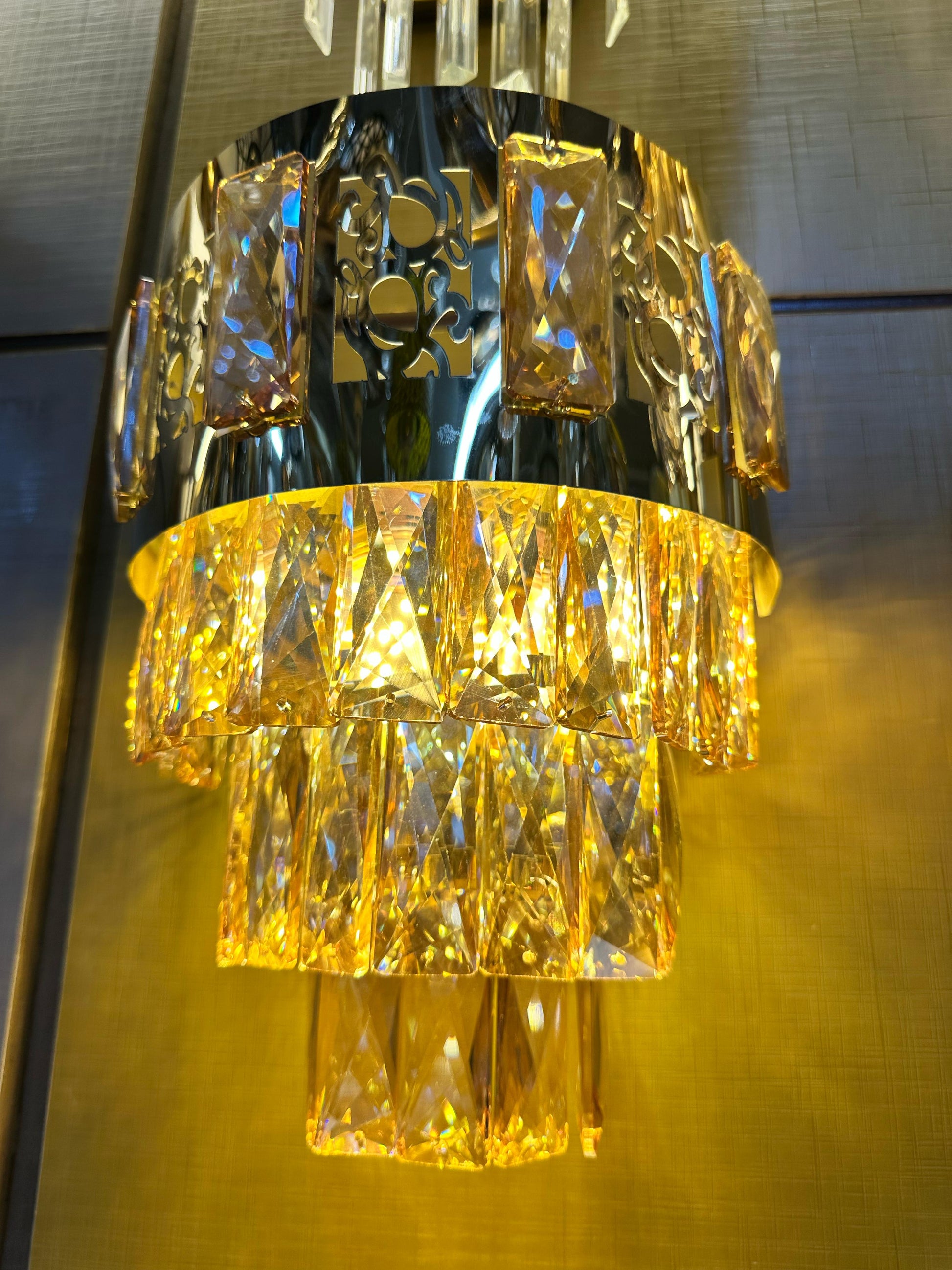 The Crystal Pendant Wall Light brings elegance and warmth to any space. Featuring a teardrop-shaped transparent crystal glass body paired with a shiny golden metal top, this pendant light reflects sophistication and timeless design. The soft warm yellow glow adds a cozy and inviting ambiance, perfect for modern homes and stylish interiors.