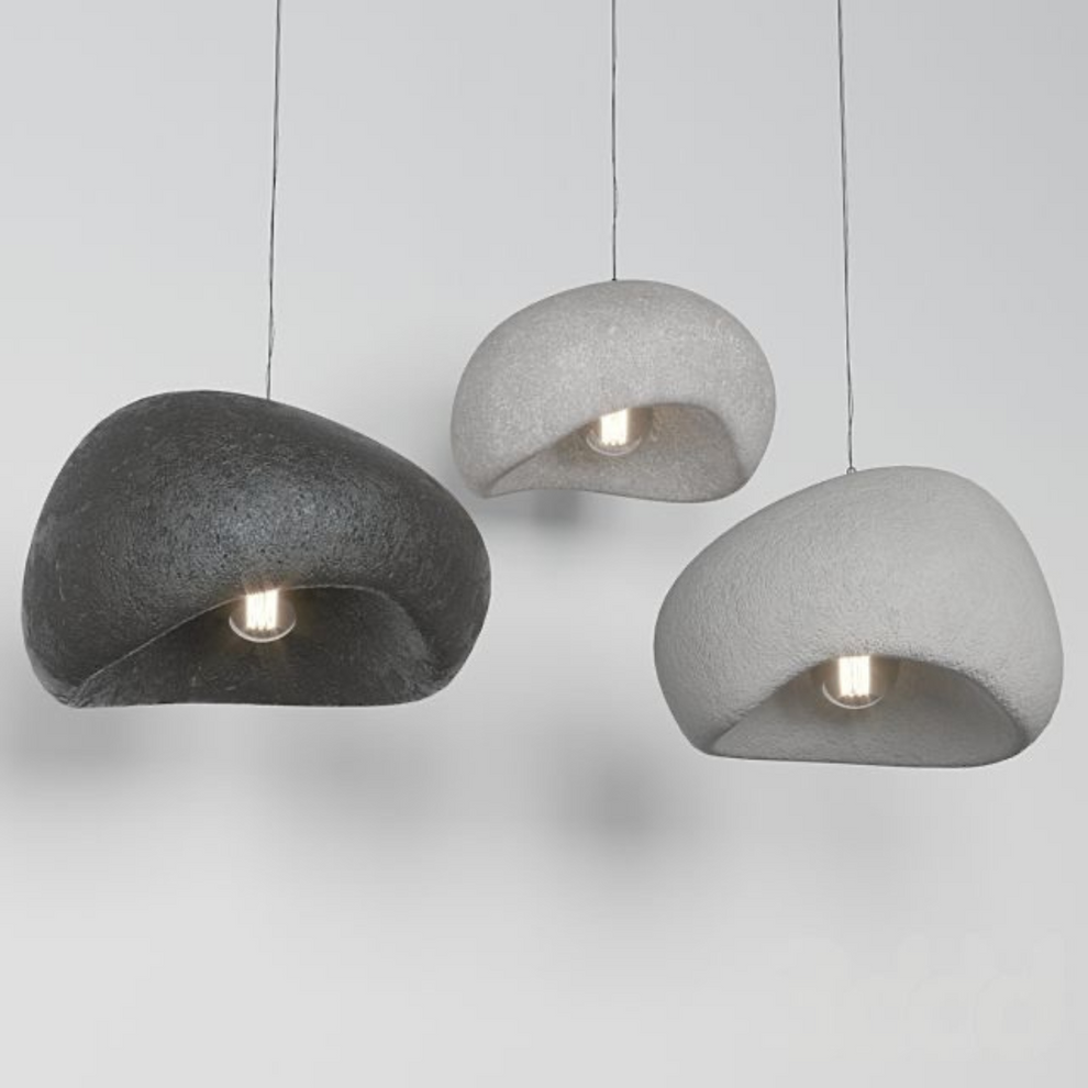 Inspired by the beauty of natural stone and wabi-sabi design, this sculptural hanging light adds quiet elegance to any space. Its soft, ambient glow and organic form create a calming atmosphere, perfect for minimalist and earthy interiors.