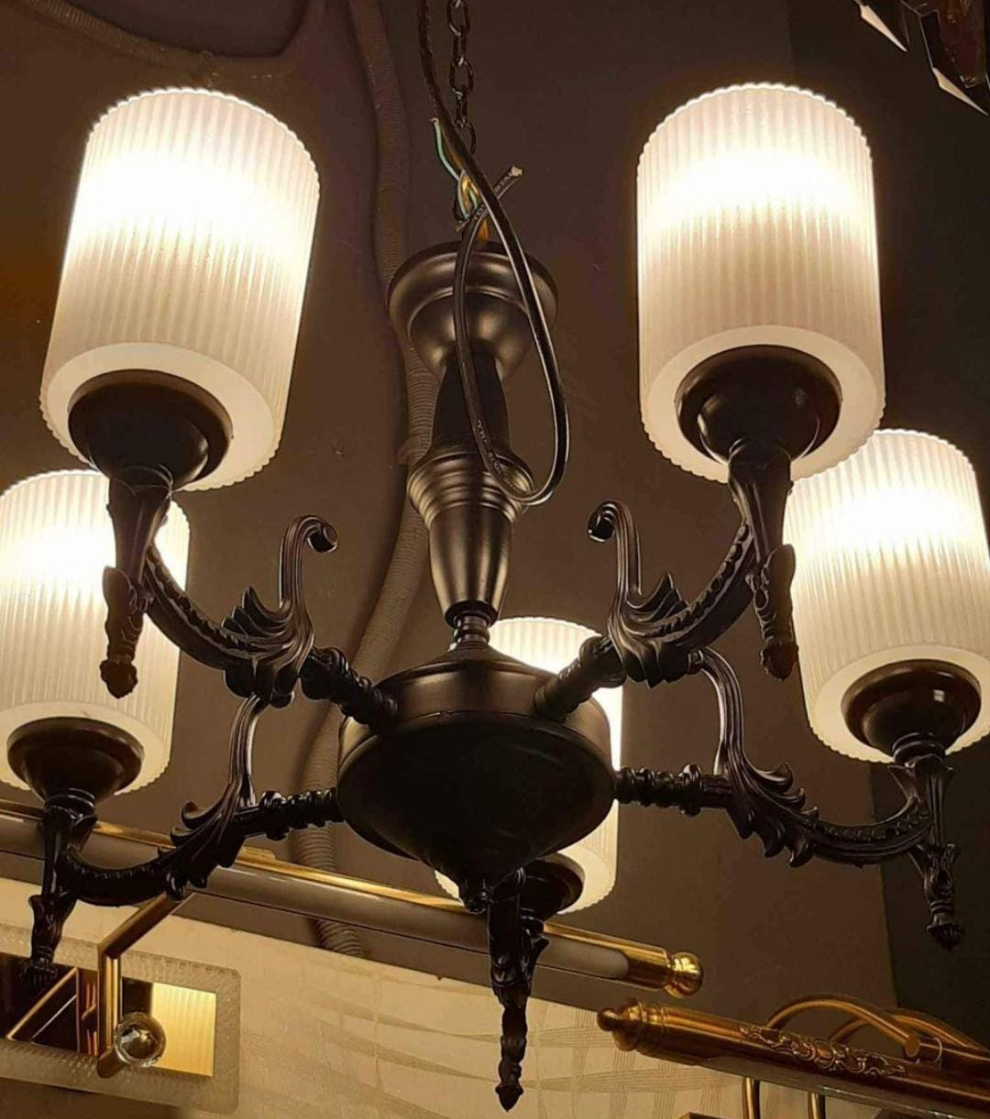 This elegant Metal and Fiber Glass Chandelier features 5 arms made with durable metal, providing a sleek and modern touch to any room. The combination of metal and fiber glass ensures long-lasting quality, making it a wise investment for any home. Illuminate your space with style and sophistication.
